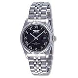 Make a lasting impression when you match this silver-tone Invicta Camelot stainless steel men's dress watch with your professional or casual couture. It features a polished finish on the watch case and multi-link bracelet band, and it's topped by a coin-edged raised bezel that frames the black dial face. It also includes a full Roman numeral display with Tritnite luminous-tips, baton hands (with seconds hand), and a date window at 3 o'clock with magnifier. Other features include a scratch-resistant mineral crystal and water resistance to 50 meters (165 feet)--suitable for swimming but not for diving.