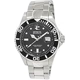 Stainless steel case with a stainless steel bracelet. Unidirectional rotating black ion-plated bezel. Black dial with luminous hands and dot hour markers. Minute markers around the outer rim. Luminiscent hands and dial markers. Magnified date display at the 3 o'clock position. Swiss 26 jewel automatic movement. Scratch resistant flame fusion crystal. Screw down crown. Screw down case back. Case diameter: 45 mm. Fold over with safety release clasp. Water resistant at 500 meters / 1650 feet. Invicta Reserve Mens Diver Automatic Watch 6882. Read more
