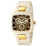 The Invicta makes a bold statement with its intricate detail and design, personifying a gallant structure. It's the fine art of making timepieces.Swiss watchmaker Invicta strikes again with the gorgeous Ivory Corian Watch, sure to turn heads with its unique design and bold color combinations. A brown textured dial boasts gold-tone hands and indices, as well as three gold tone subdials, two of which feature the day and date. Gold-tone inserts on the band and deployment clasp provide still more appealing color and texture contrasts, as does a gold-tone crown. The case and bracelet are made of corian in a lovely ivory color. The watch is water resistant to 100 feet (30 M). Read more