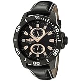 Contemporary sportiness meets vintage appeal in the I By Invicta Men's Black Dial Black Leather Watch, which boasts a textured leather band and a matching black dial. The watch's bold dial is the home of two large subdials at the six and twelve o'clock positions and luminous baton hour markers accented with gold-toned outlines. Backed by a stainless steel case and protected by a genuine mineral crystal, the dial also features luminous gold-toned hands, which provide nice color contrast for the watch's silver-black unidirectional bezel. The bezel boasts easy-to-read Arabic minute markers. Other features include reliable Japanese quartz movement, water-resistance to 165 feet (50 meters), and a traditional buckle band closure. Read more