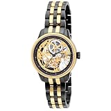 Gunmetal ion-plated stainless steel case with a two-tone (gunmetal and gold-tone) stainless steel bracelet. Fixed gold-tone bezel. Skeletonized dial with gunmetal with luminous tip hands. Minute markers around the inner bezel. Luminiscent hands. Mechanical movement. Scratch resistant flame fusion crystal. Push / pull crown. Skeleton case back. Case diameter: 35 mm. Case thickness: 11 mm. Deployment clasp. Water resistant at 50 meters / 165 feet. Functions: hours, minutes, seconds. Invicta Vintage Mechanical Skeleton Dial Ladies Watch 0565. Read more